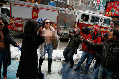 가십 뉴스 전문매체인 '가거닷컴'은 12일(현지시간) 뉴욕 맨하탄 타임스퀘어 앞에서 펼쳐진 글래머 여성들의 상반신 누드 촬영현장 사진을 공개했다.