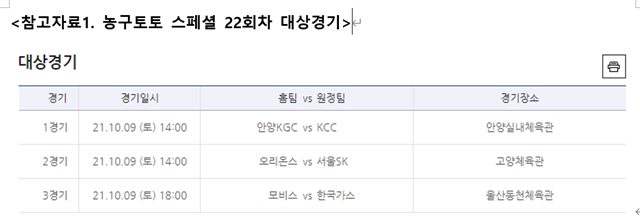8일(금) 오전 8시부터 발매를 시작하는 농구토토 스페셜 22회차의 대상경기는 9일(토) 오후 2시에 안양실내체육관에서 벌어지는 안양KGC-KCC(1경기)전을 시작으로 오리온스-서울SK(2경기), 모비스-한국가스(3경기)전이 선정됐다.