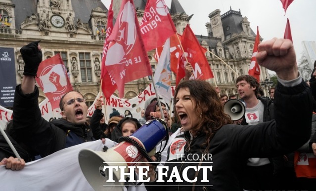 헌법위원회의 판결이 발표되자 파리 시청 앞에 모여 있던 시민들은 "연금개혁이 철회될 때까지 파업은 끝나지 않는다"는 현수막을 들고 항의 시위를 벌였다.