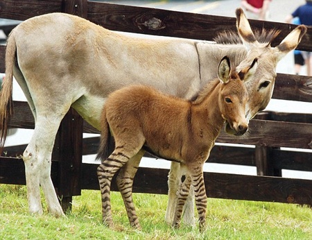 영국 국영방송 'BBC'는 30일(한국시간) "미국 조지아 주의 야생동물보호구역에서 얼룩말과 당나귀 사이에서 새끼가 태어났다"며 "동물의 이름은 아빠 얼룩말(zebra)와 엄마 당나귀(donkey)를 합친 '제동크(zedonk)'다"고 전했다.