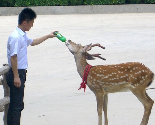 사슴에게 맥주를 먹이기 시작한 사람은 장 시앙시다. 중국 산둥성 위해 지방의 한 레스토랑에서 근무하고 있는 시앙시는 지난해 11월 거리를 떠도는 사슴을 처음 발견했는데 장난삼아 맥주를 주기 시작한 것이 발단이됐다.