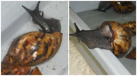 미국의 뉴스사이트 '올뉴스'는 11일(한국시간) "한 손으로도 들 수 없을 만큼 크기가 큰 대왕 달팽이가 발견됐다"며 "이 달팽이의 길이는 약 35cm에 달한다"고 보도했다.