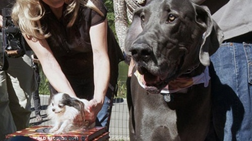[김가연 인턴기자] 세계에서 가장 큰 개와 작은 개가 한 자리에 만나는 이색 광경이 연출됐다.