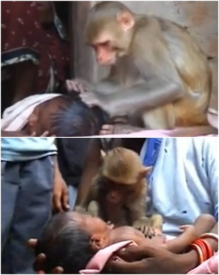 미국의 한 엽기 사이트는 26일(한국시간) "인도에 생후 1개월 된 아이를 지극정성으로 돌보는 원숭이가 있다"며 "함께 있을 때는 아이 곁에서 한 시도 떨어지지 않는 등 마치 자신의 자식을 대하듯 아이를 보살피고 있다"고 소식을 전했다.