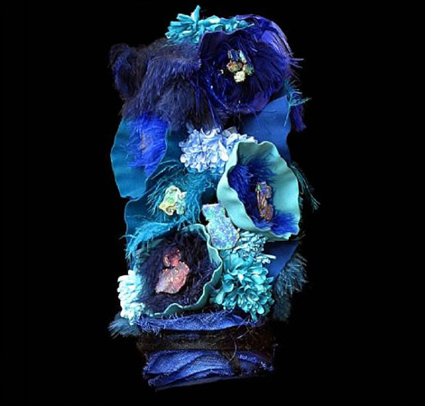사진 속 모자는 가격만큼 긴 길이를 자랑했다. 위로 길게 솟은 모자는 온통 파란색으로 장식돼 있었다. 때문에 이름도 '깊고 푸른 바다'였다.여러 개의 꽃 모양 안에 오팔이 자리잡고 있었으며 가장자리는 깃털로 장식됐다.