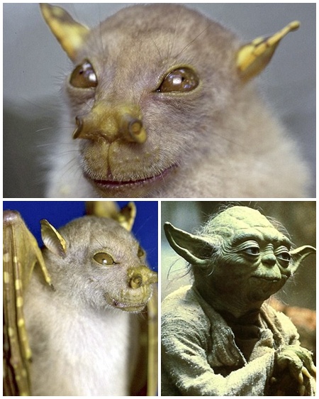 오세아니아 파푸아뉴기니의 지역에서 발견된 이 박쥐는 요다와 판박이었다.하늘 위로 삐죽 올라 선 귀, 민둥 머리, 옆으로 길게 찢어진 눈까지 닮았다. 낮은 코에 입이 약간 돌출된 것도 비슷했다.