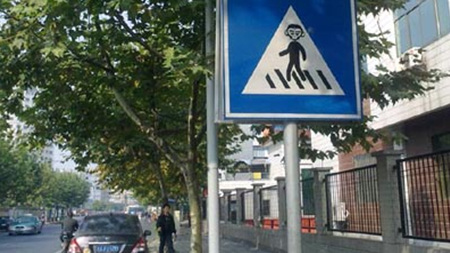 영국 일간지 '메트로'는 지난 18일(한국시간) "중국 항저우의 한 길가에 사람이 아닌 원숭이를 그려 넣은 도로 표지판이 있다"며 "이는 많은 이들에게 웃음을 줌과 동시에 의미에 대한 궁금증을 유발하고 있다"고 전했다.
