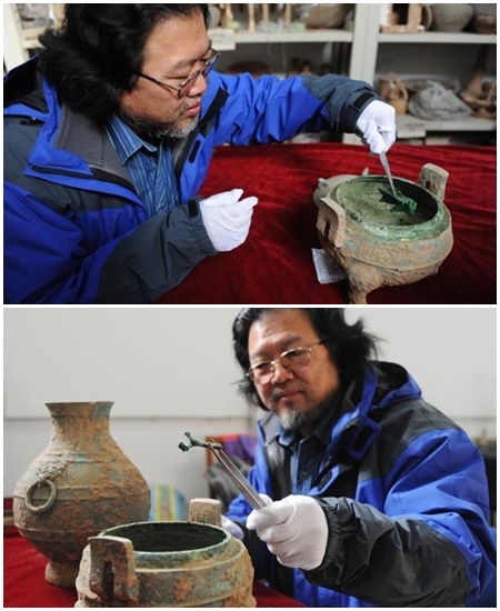 미국 유명 엽기사이트는 지난 12일(한국시간) "중국 고고학자들이 고대 무덤을 정리하는 동안 심상치않은 물건이 있어 발견하게 됐다"며 "이 식기구는 2,400년전에 사용된 스프를 담는 그릇이었고 안에는 스프로 추정되는 내용물도 함께 있었다"고 전했다.