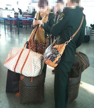 4일 온바오 닷컴은 중화권 뉴스 사이트 화상망의 보도를 인용, 고가의 명품백으로 무장한 젊은 여성들의 사진을 공개했다. 보도에 따르면 해당 사진은 지난 12월 31일 중국 선진공항에서 한 시민이 촬영해 인터넷에 올린 것으로 제복을 입은 것으로 보아 여군으로 추정된다고 전했다.