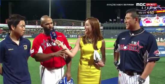 지난 2015프로야구 올스타전에서 홈런왕이 된 황재균은 테임즈와 함께 인터뷰를 진행했다.