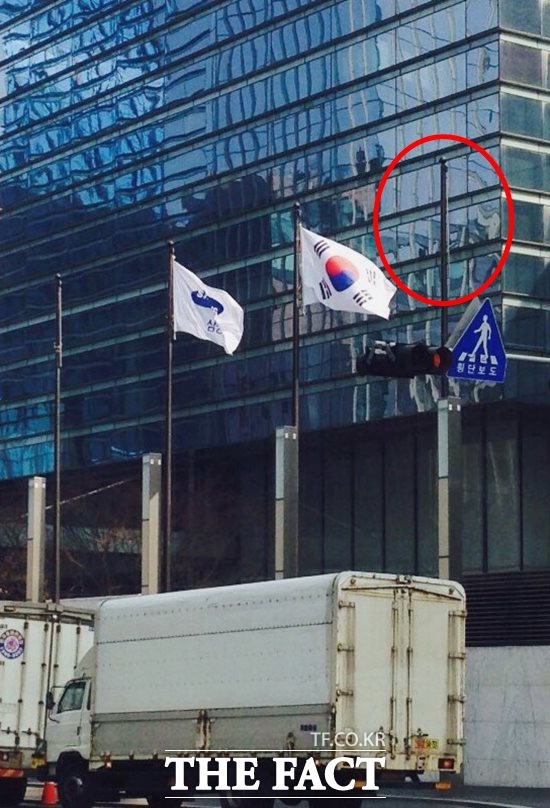 19일 오전 서울 서초 사옥 앞은 이삿짐을 나르기 위해 바삐 움직이고 있었다. 서초 사옥 앞에 걸려 있던 삼성전자의 깃발 또한 내려가 삼성전자의 8년간의 '서초 시대' 마감을 알렸다. 삼성전자 관계자는 "이사 때문에 깃발을 내리게 됐다"고 말했다.