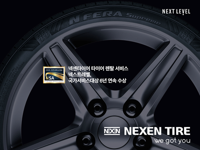 [더팩트ㅣ황지향 기자] 넥센타이어는 자사의 타이어 렌탈 서비스 '넥스트레벨'이 '2025 국가서비스대상' 타이어 종합서비스 부문에서 6년 연속 대상을 수상했다고 27일 밝혔다.