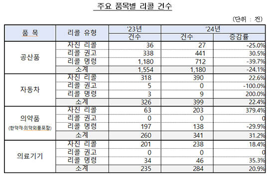 '자진리콜'은 898건으로 209건(30.3%), '리콜권고'는 630건으로 129건(25.8%) 증가했다.