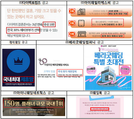 [더팩트ㅣ세종=박은평 기자] '최저가보장', 국내 1위' 등의 표현을 사용해 과장·허위 광고를 한 결혼준비대행업체들이 공정거래위원회로부터 무더기 제재를 받았다.