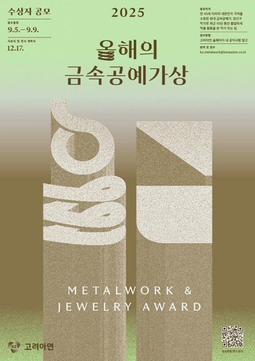 [더팩트ㅣ황지향 기자] 고려아연은 문화예술 분야 사회공헌의 일환으로 '2025 올해의 금속공예가상'을 주최하고 대한민국 금속공예의 미래를 이끌 작가 발굴에 나선다고 11일 밝혔다.