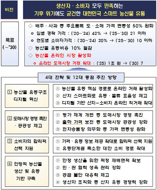 먼저 온라인 거래 중심으로 농산물 유통구조를 재편한다.