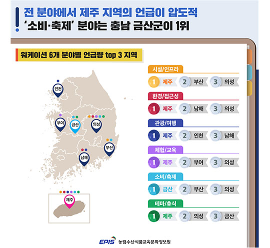 지역별 언급에서는 대부분의 분야에서 ‘제주’ 지역이 압도적으로 높은 비중을 차지한 것으로 나타났다.