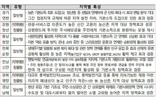 아울러 지역별 시범사업 운영이 지역공동체·경제 활성화, 지역소멸 대응이라는 사업 취지에 부합할 수 있도록 관계부처와 협업해 지원한다는 방침이다.