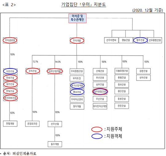 우미는 그룹 차원에서 이 사건 지원행위를 기획·추진했다.