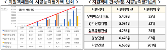이를 통해 모두 연매출 500억원 이상의 중견건설사로 성장했다. 특히 대부분의 지원객체들은 지원행위 전까지 매출 및 주택공사 경험이 전혀 없던 업체들이었다.
