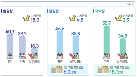 반면 당일형과 숙박형 활동은 가족, 친구 중심의 동반 활동 비중이 높아 ‘일상형은 혼자 또는 반려동물과 함께, 당일·숙박형은 동행 중심’이라는 활동 유형별 이용 구조가 뚜렷한 차이를 보였다.