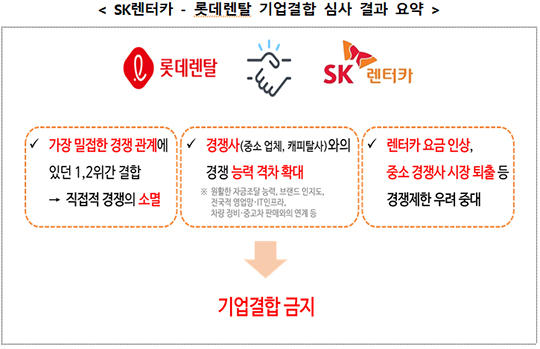 이번 기업결합으로 인해 '압도적 대기업 1개사 대 다수의 영세한 중소기업들'로 단기 렌터카 시장의 양극화 구조가 심화된다고 공정위는 판단했다. 이해관계자들도 이 같은 우려를 공정위에 전달했고, 경제분석 결과도 가격 인상 가능성이 높은 것으로 나타났다.