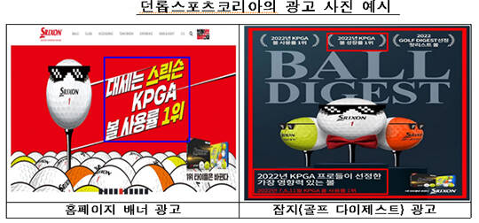 공정위에 따르면 던롭스포츠코리아는 객관적 근거 없이 'KPGA 볼 사용률 1위' 'KPGA 프로들이 선정한 가장 영향력 있는 볼' 등으로 광고했다.