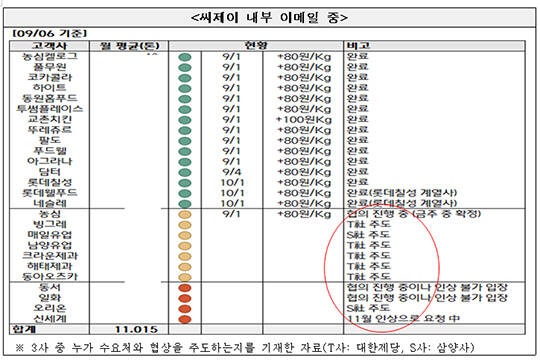 각 수요처별로 점유율이 가장 높은 제당사가 협상을 주도하고 협상 경과를 수시로 공유했다. 예컨대, A 음료회사는 CJ가, B 과자회사는 삼양사가, C 음료회사는 대한제당이 주도해 협상하는 식이다.
