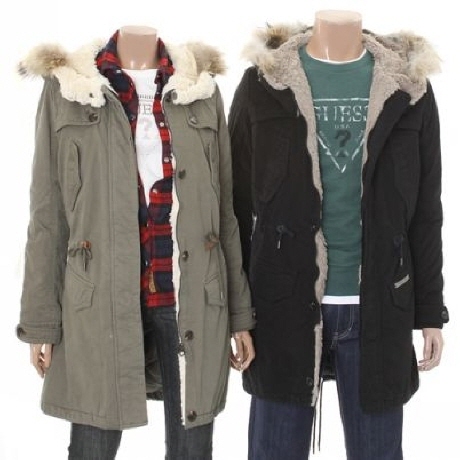 아메리칸 섹시 어패럴 게스(GUESS)에서 새롭게 선보인 야상점퍼는 기존의 딱딱한 밀리터리룩에서 벗어난 심플한 포멀 캐주얼 스타일로 인기를 끌고 있다. 여기에 탈부착 가능한 라쿤털 후드와 충전재를 사용하여 스타일뿐 한파가 극성을 부리는 최근에도 높은 관심을 받고 있다.