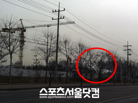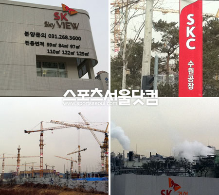 아파트 건설 부지에 들어서자 먼저 SKC 수원공장에서 뿜어져 나오는 하얀 연기가 눈에 띄었다. 그 옆에 SK건설 아파트 건설 현장도 함께 시야에 들어왔다. 불과 수백여 미터의 거리를 두고 화학공장과 SK 스카이뷰 건설 현장이 공존하고 있어서다.