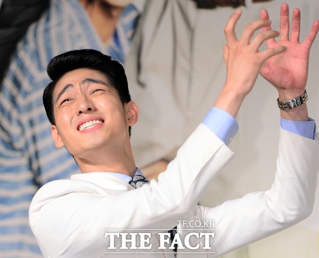 윤박은 지난해 8월 13일 열린 KBS 2TV 드라마 '가족끼리 왜 이래' 제작 발표회 현장에서 알 수 없는 표정과 자세를 취하고 있다.