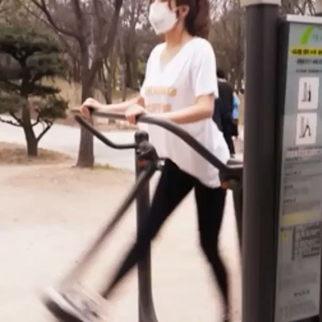 강소라가 공원에 있는 운동기구를 타고 있다. 강소라는 최근 자신의 인스타그램에 영상을 올렸다.