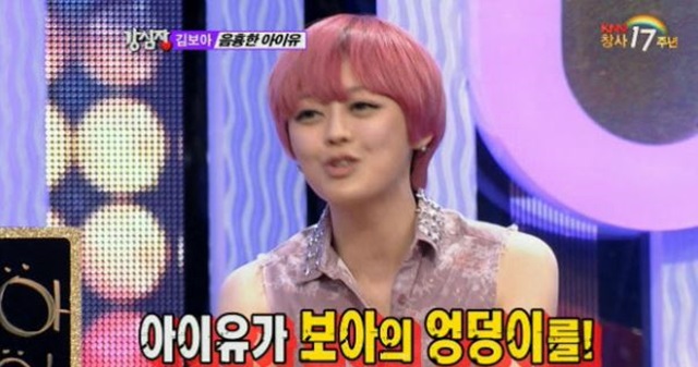 김보아는 지난 2012년 5월 22일 SBS '강심장'에 출연해 아이유의 비밀을 폭로했다.