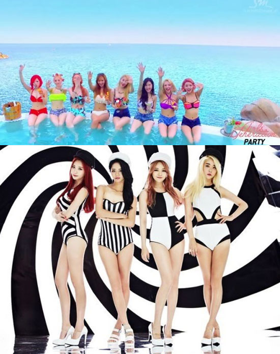 걸스데이에 앞서 소녀시대도 단체 수영복을 선보였다. 소녀시대는 신곡 '파티(PARTY)' 티저 영상에서 화려한 색상의 수영복으로 몸매를 과시했다. 또 소녀시대는 이날 신곡을 수영장에서 처음 공개한다는 계획이다.