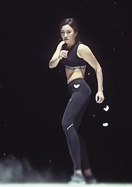 사진 속 이미도는 스포츠 브라와 몸에 딱 붙는 트레이닝 복을 입고 포즈를 취하고 있다.