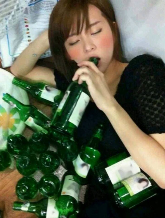 사진 속 은가은은 소주 병을 입에 물고 볼이 발그레진 채 바닥에 누워 있다. 특히 은가은의 주변에 소주가 쌓여 있어 눈길을 끌고 있다.