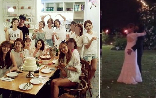 사진 속 배용준과 박수진은 백허그를 하며 친구들과 즐거운 파티를 즐기고 있다.