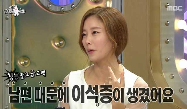 이지현은 5일 방송된 MBC '라디오스타'에서 남편 때문에 이석증이 생겼다고 밝혔다.