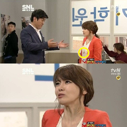 이날 방송에서 서유리는 배우 윤제문과 연기를 하던 도중 블라우스의 단추가 벌어져 그 사이로 속살을 노출했다.