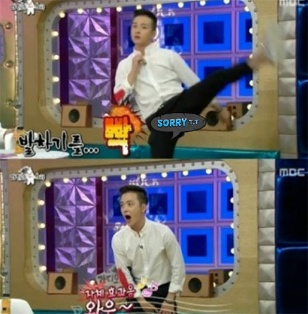 사진은 MBC '황금어장'의 한 장면으로 12일 김혜성이 출연해 발차기를 보여주는 것이 캡쳐돼 있다.