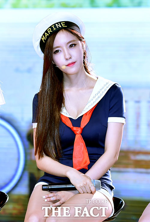 티아라 효민은 짧은 의상을 의식한 듯 손으로 가리는 동작을 취해 눈길을 끌었다.