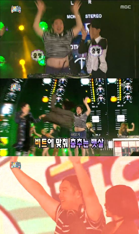 특히 유재환이 열정을 다해 춤을 추자 옷이 올라가며 뱃살이 노출됐고, 이를 아는지 모르는지 유재환은 무대를 끝까지 즐기는 모습을 보여 눈길을 끌었다.