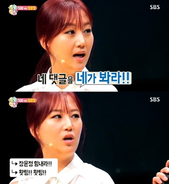 장윤정은 7일 방송된 SBS 예능 프로그램 '힐링캠프-500인'에 출연해 진솔한 이야기를 펼쳤다.