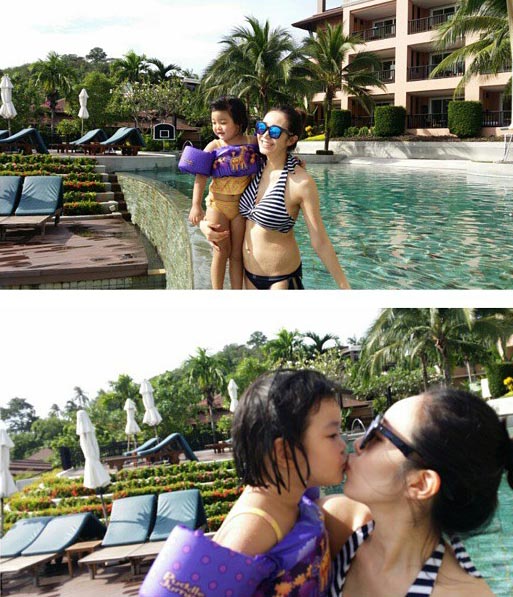 사진 속 박샤론은 딸과 함께 즐거운 시간을 보내고 있다.