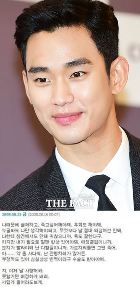 김수현은 2008년 싸이월드 미니홈피 게시판에 자신의 감정이 솔직하게 표현된 글을 올렸다.