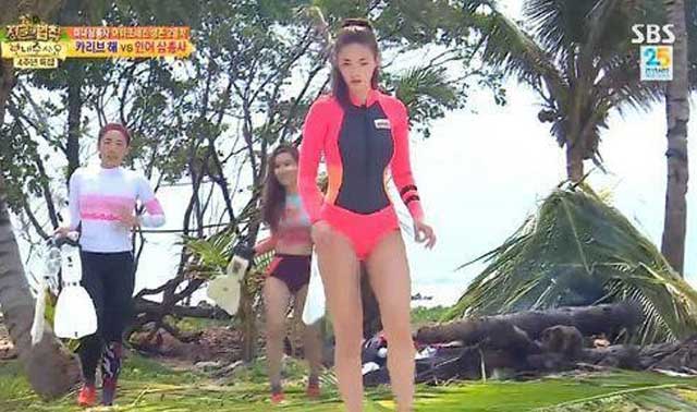 유승옥은 30일 방송된 SBS '정글의 법칙 in 니카라과'에서 완벽한 수영복 몸매를 자랑했다.