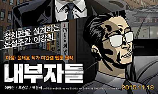 '내부자들'의 원작은 '미생', '이끼'등을 그린 인기 웹툰 작가 윤태호 작품으로 언론과 조폭, 정치계를 날카롭고 심도있게 집중 조명했다. 윤태호의 '내부자들'은 현재 한겨레 신문 온라인을 통해 인기리에 연재 되고 있으며 아직까지 미완결 작품으로 알려졌다.