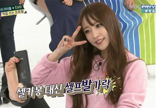 [더팩트ㅣ디지털뉴스팀]MBCevery1'주간아이돌'에 출연한 그룹 EXID의 멤버 하니의 '발셀카'가 눈길을 끈다.