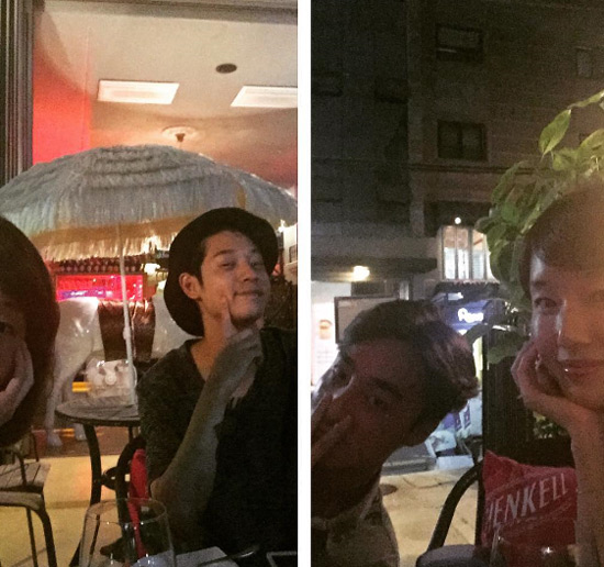 사진 속 이정현은 정준영, 로이킴과 한 음식점에서 다정한 포즈를 취하고 있다. 테이블 위에는 와인잔이 놓여져 있어 눈길을 끌고 있다. 이정현은 민낯으로 손을 턱에 괴고 있고 정준영과 로이킴은 브이를 그리고 있다.