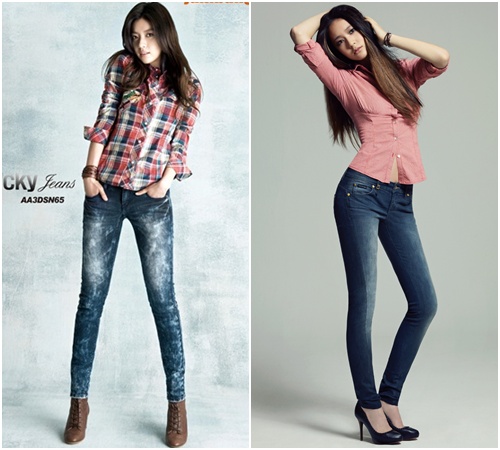 '에프엑스'의 멤버 크리스탈도 캘빈클라인 화보에서 완벽한 각선미를 선보였다. 크리스탈은 약간 비스듬히 서서 한쪽 다리를 접는 포즈를 취했다. 덕분에 군살없이 늘씬한 다리라인에 시선이 집중됐다. 와이셔츠에 청바지라는 다소 밋밋한 스타일링이었지만 늘씬한 다리라인은 보는 이의 눈을 시원하게 만들었다.